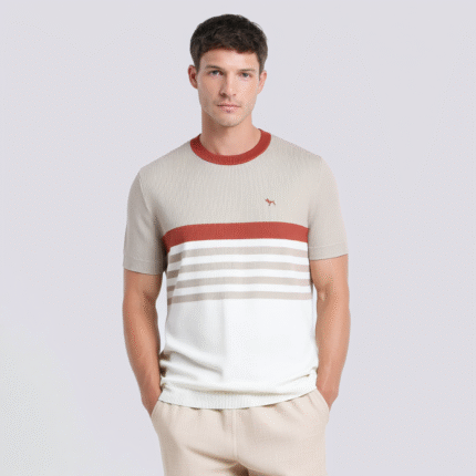 Men’s Textured Knit T-Shirt 92% Cotton 8% Nylon Crew Neck Short Sleeve Fashion Pullover Sweater Tee Ready Stock