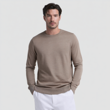 Men’s Merino Wool Blend Sweater Crew Neck Pullover Cotton Nylon Jumper Long Sleeve Knitwear for Winter