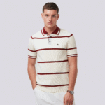 2025 New Design Men’s Hooded Polo Shirt 100% Cotton Terry Stripe Short Sleeve Hoodie Pullover Wholesale Custom