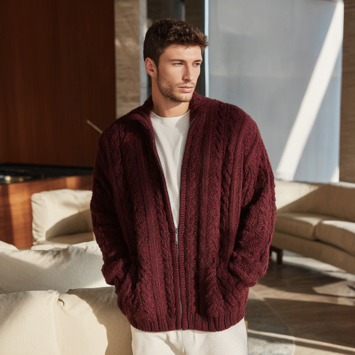 Key Design Features – Oversized fit, chunky knit texture, large zipper