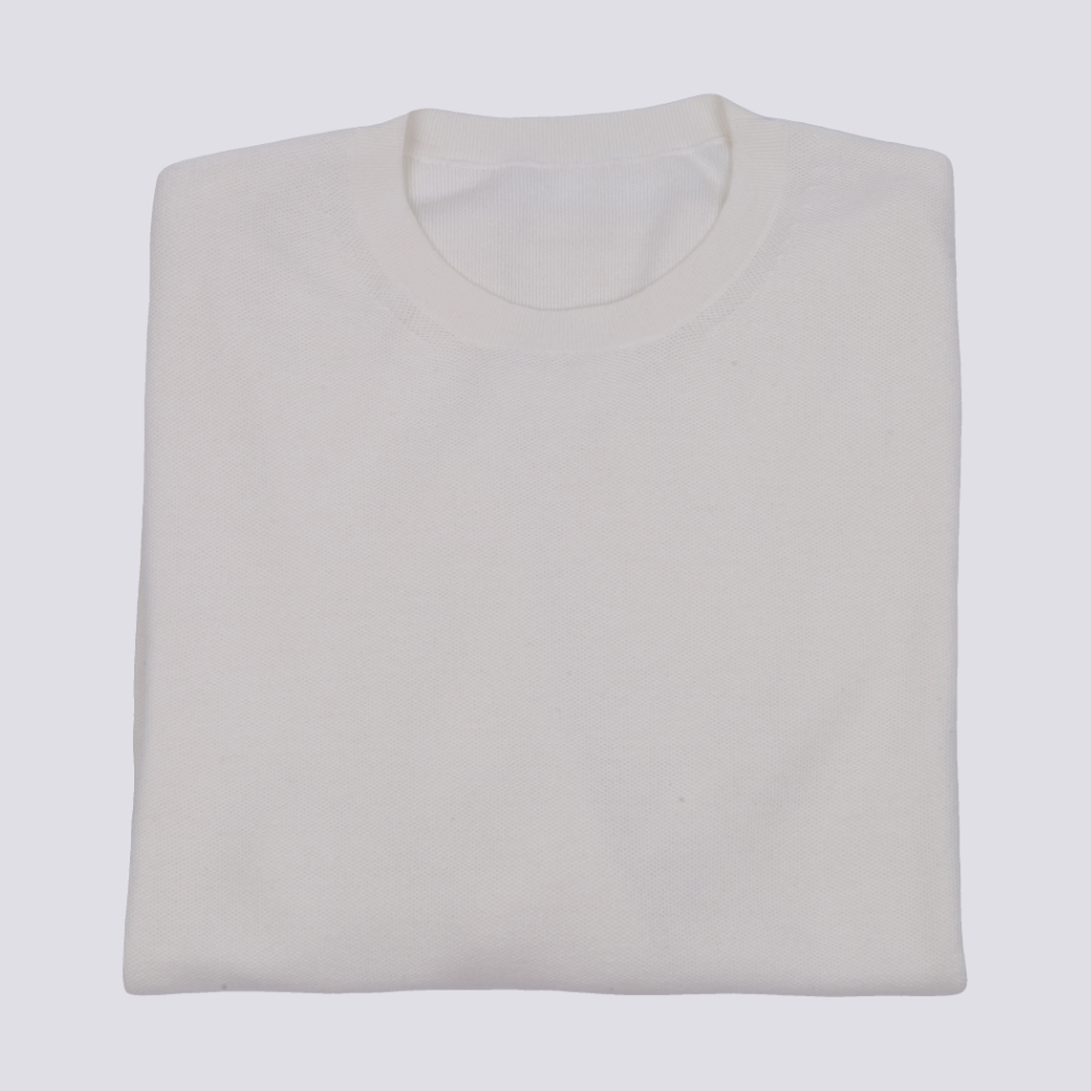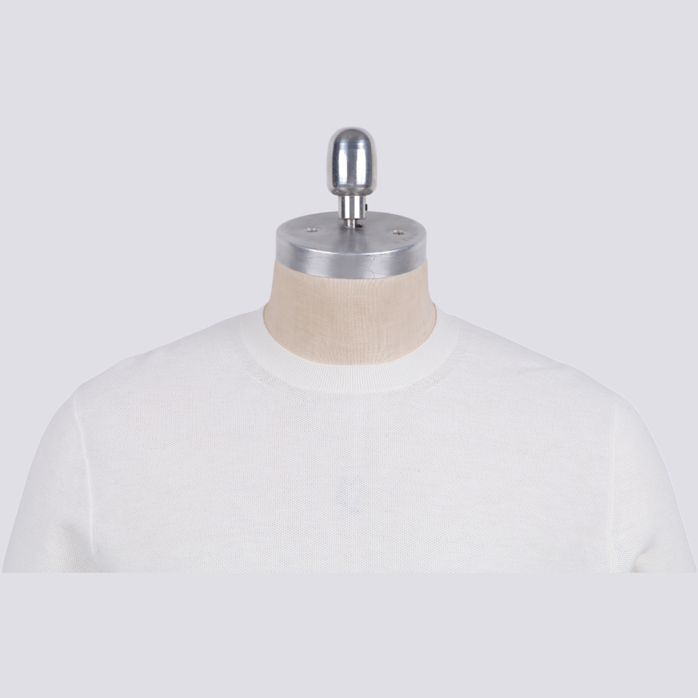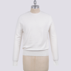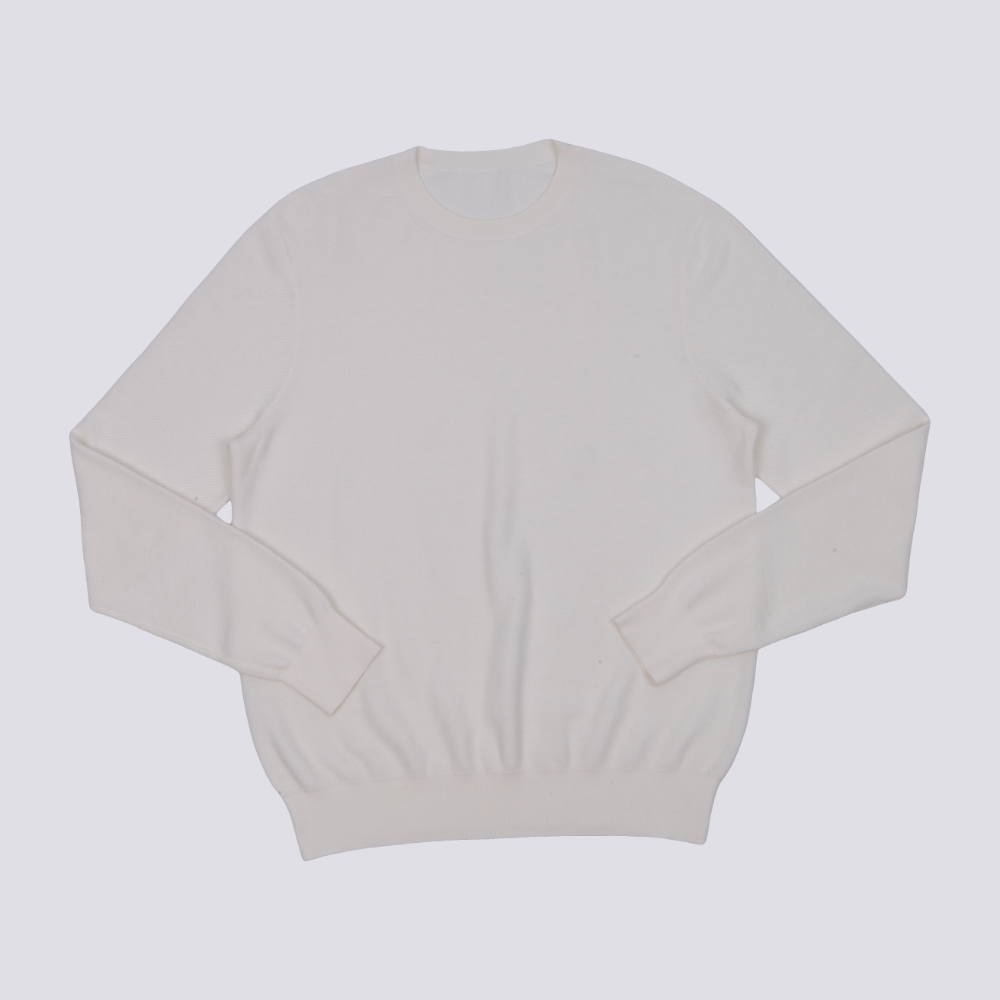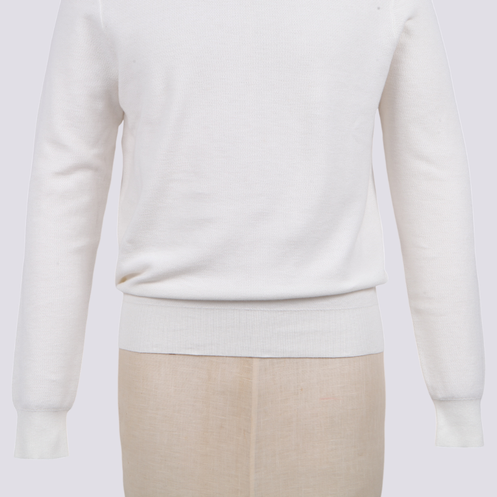 Luxury Men’s Knit Top Cotton Silk Nylon Blend Long Sleeve Fine Gauge Pullover Sweater White