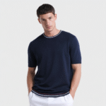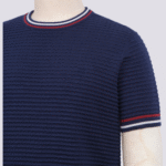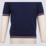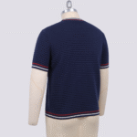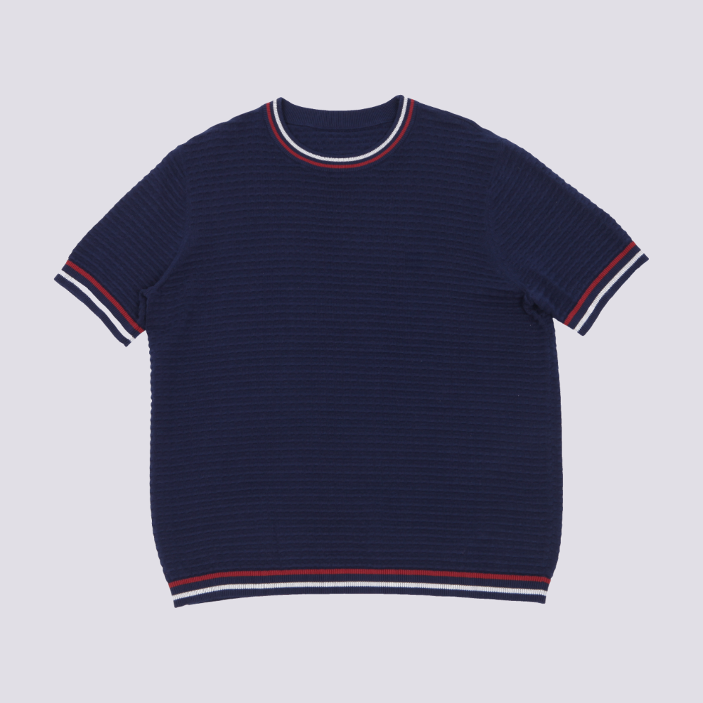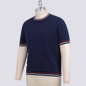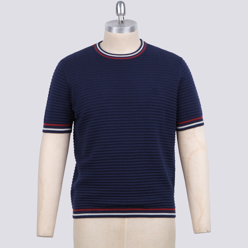 Wholesale Men’s Knitted T-Shirt 80% Cotton 20% Spandex Stripe Short Sleeve Sweater Tee Custom Logo Stretchy Pullover