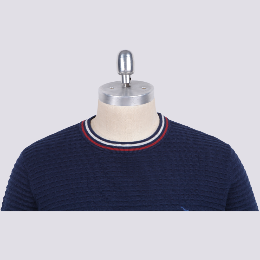 Men's Stretch Knit Sweater Cotton Spandex Blend Long Sleeve Textured Crew Neck Pullover Jumper Wholesale