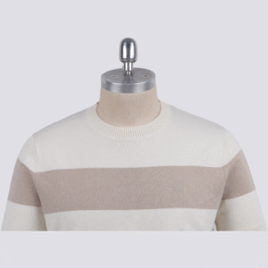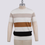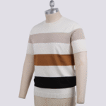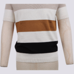 首页 Our Product Men T shirt& Polos Men’s Black and Beige Striped Sweater Viscose Polyester Blend Long Sleeve Crew Neck Pullover Jumper Wholesale