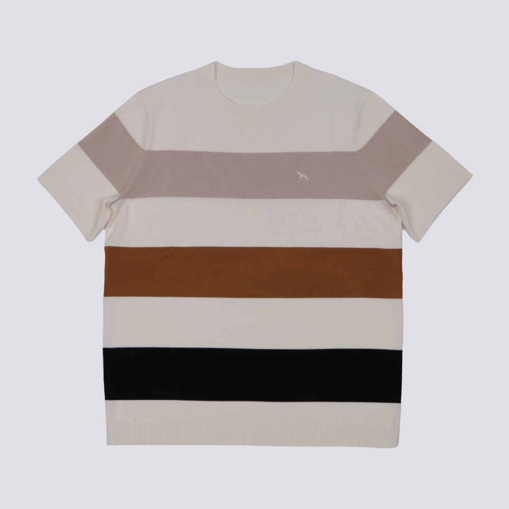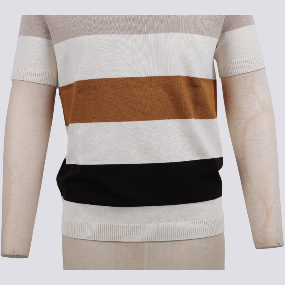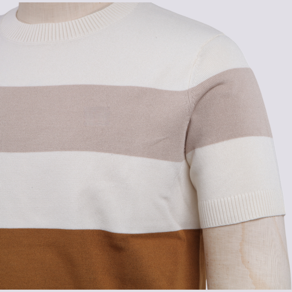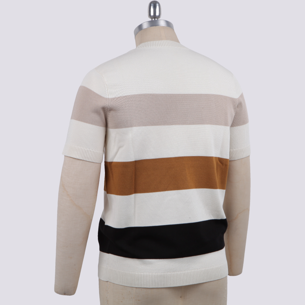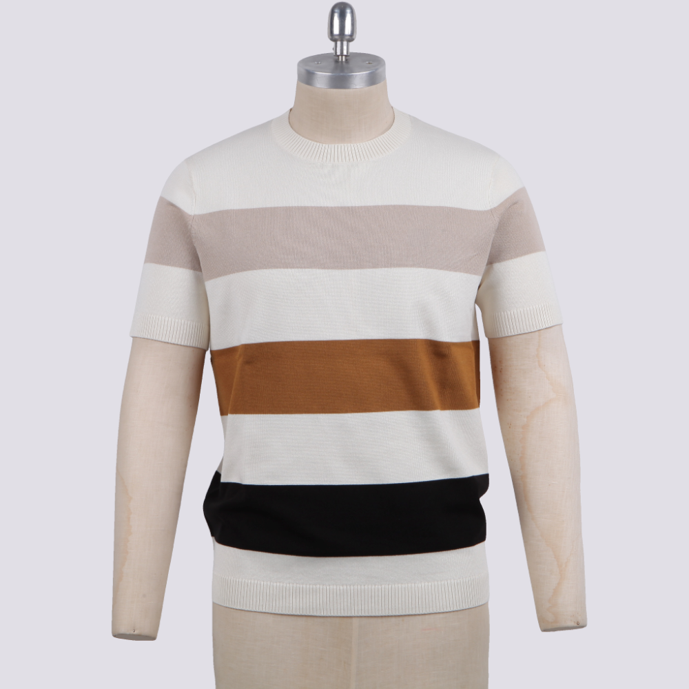 Wholesale Men’s Knitted T-Shirt 80% Cotton 20% Spandex Stripe Short Sleeve Sweater Tee Custom Logo Stretchy Pullover
