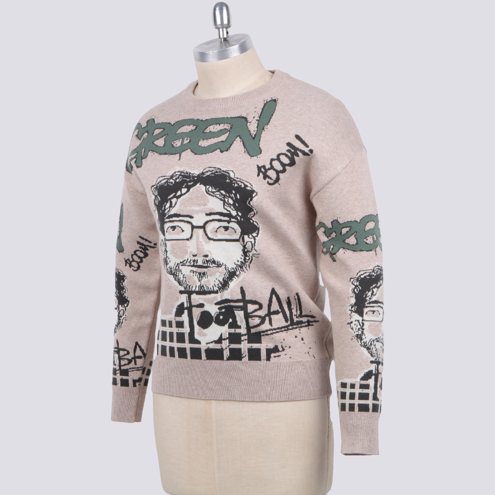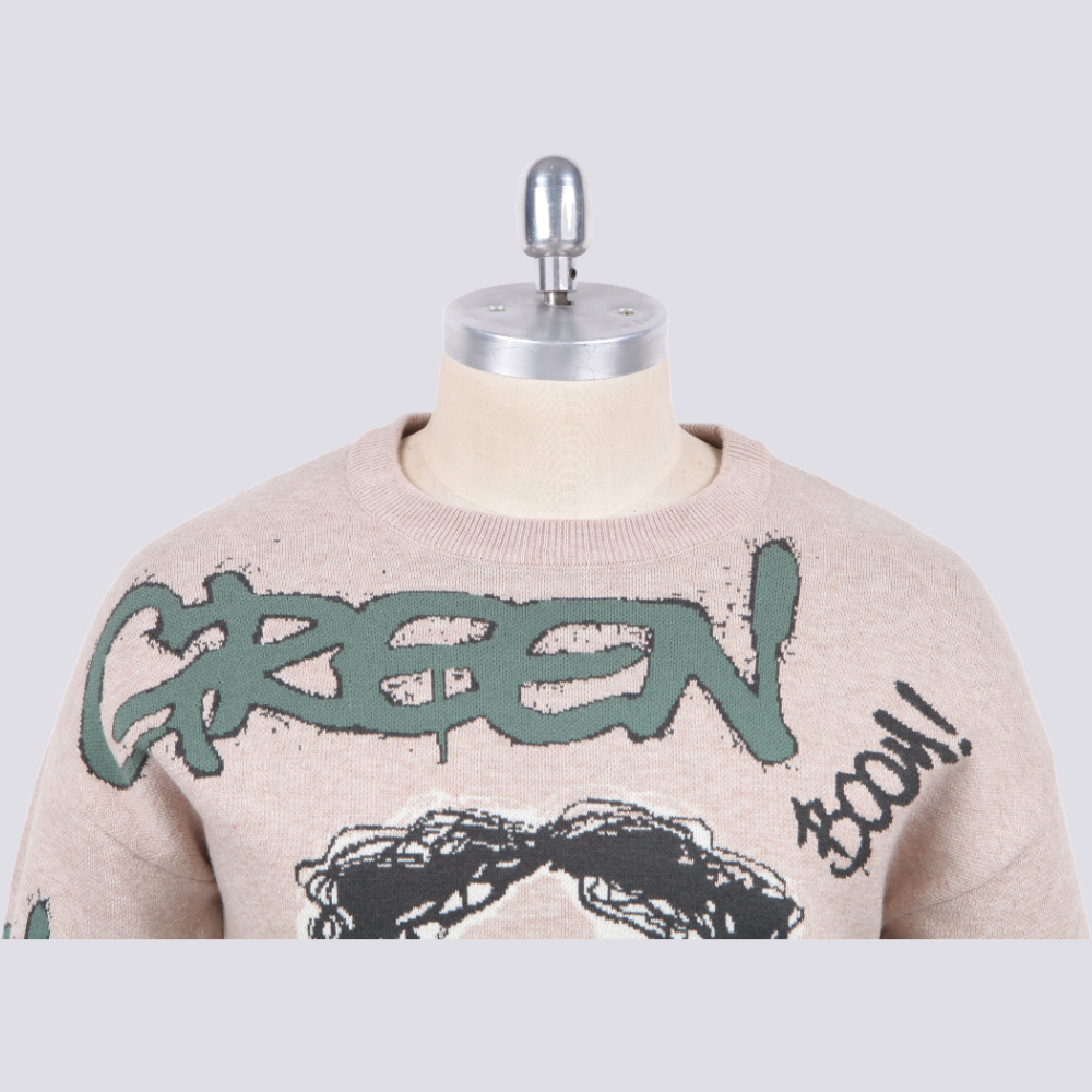 Men’s Streetwear Sweater 100% Cotton Crew Neck Pullover with Graphic Print Fashion Jumper Ready to Ship