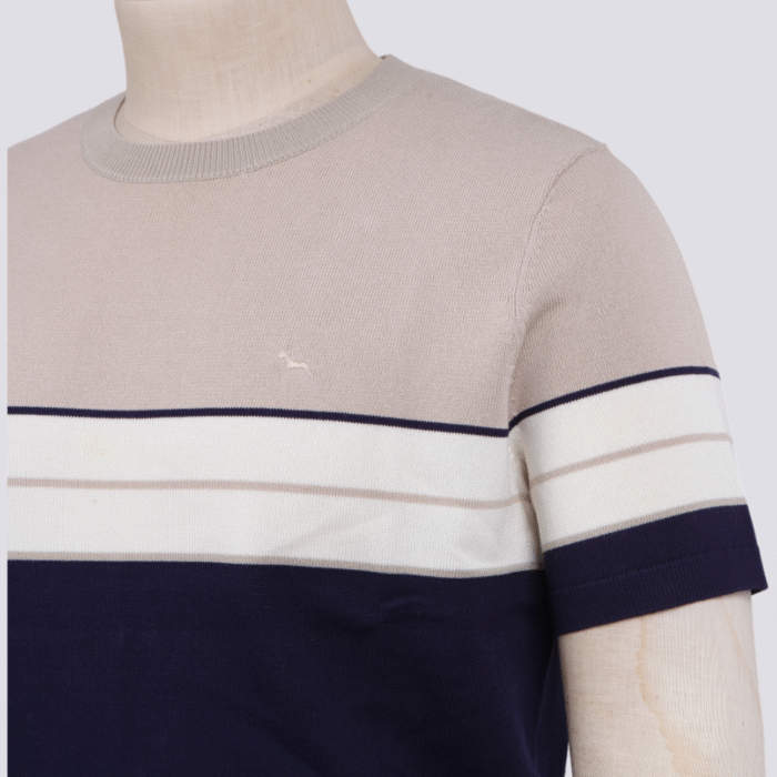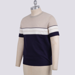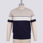 Men’s Color Block Sweater Viscose Blend Long Sleeve Crew Neck Pullover Jumper Navy and White Wholesale