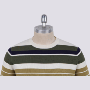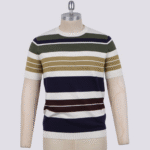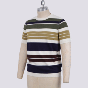 Men’s Earth Tone Multi-Stripe Sweater Viscose Blend Long Sleeve Crew Neck Pullover Jumper Wholesale