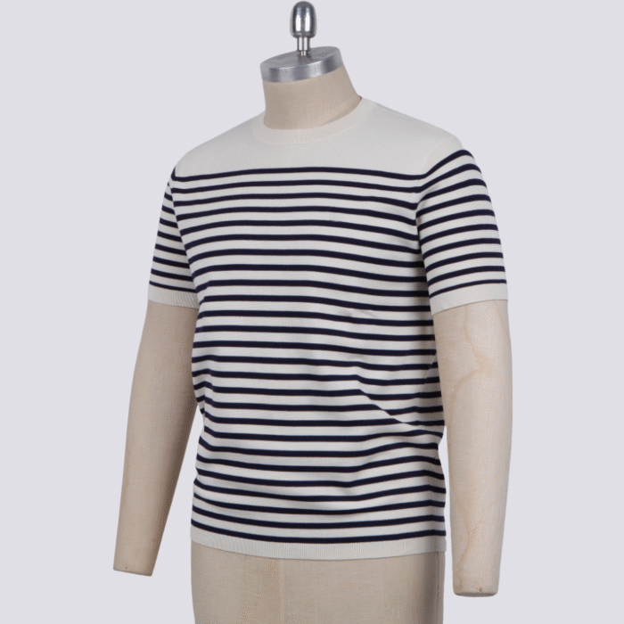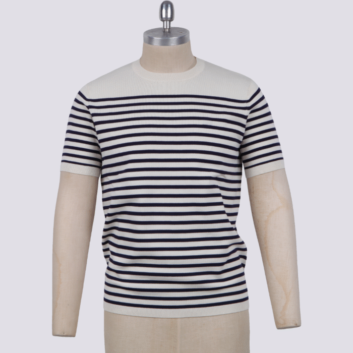 Men’s Grey and White Striped Sweater Viscose Blend Long Sleeve Crew Neck Pullover Jumper Wholesale
