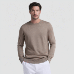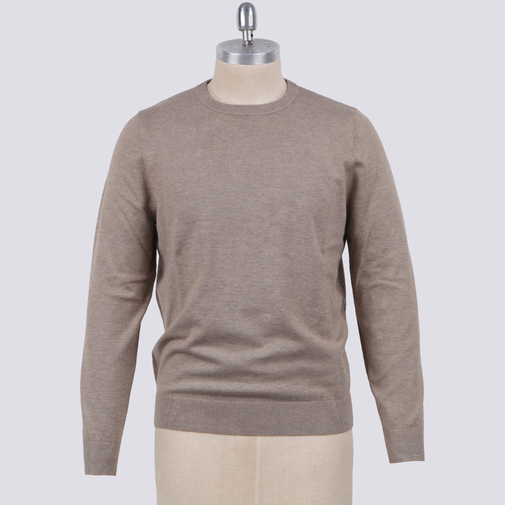 男士弹力针织毛衣棉氨纶混纺长袖纹理圆领套头衫批发