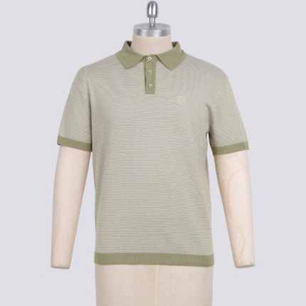 Men’s Jacquard Knit Polo Shirt 100% Cotton Short Sleeve Textured Stripe Casual T-Shirt Factory Price Ready to Ship
