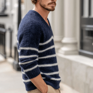 Recommended Colors – Navy with White stripes, Gray with Black stripes, Olive with Beige stripes, Burgundy with Pink stripes, Teal with Gray stripes, Brown with Cream stripes