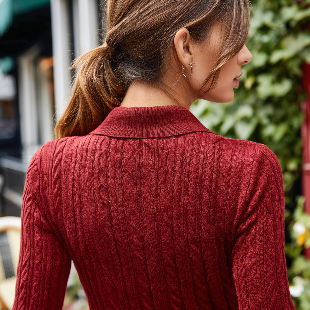 Effortless Elegance: Kate Kasin's Lightweight Knit Polo Sweater for Modern Style